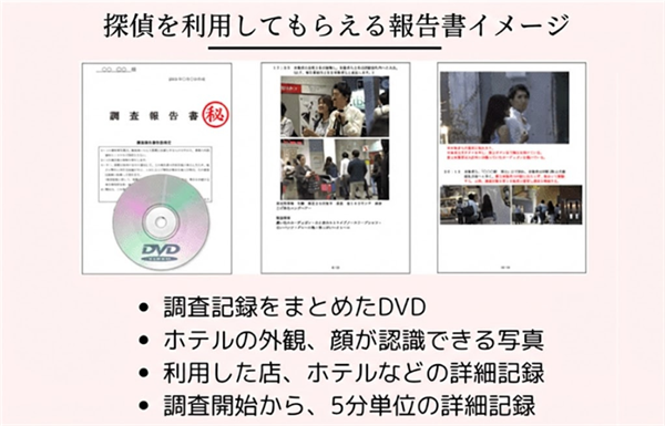 探偵の相場がわからず調査料金って結構するんだと思いましたが、結果の報告書を頂いて納得しました。担当の方の丁寧で迅速な対応は勿論、証拠となる写真も枚数が多く決定的な部分の状況まで鮮明に写っていて、これなら慰謝料請求などもかなりスムーズに行くと弁護士の方も驚いていました。