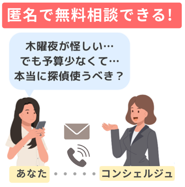 専門アドバイザーが、あなたの予算や不倫の状況を聞いて、ピッタリの探偵事務所を提案してくれますよ。
